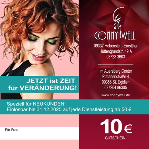 Wir von CONNYWELL werden euch zu Farben, Typ und Frisur beraten.
